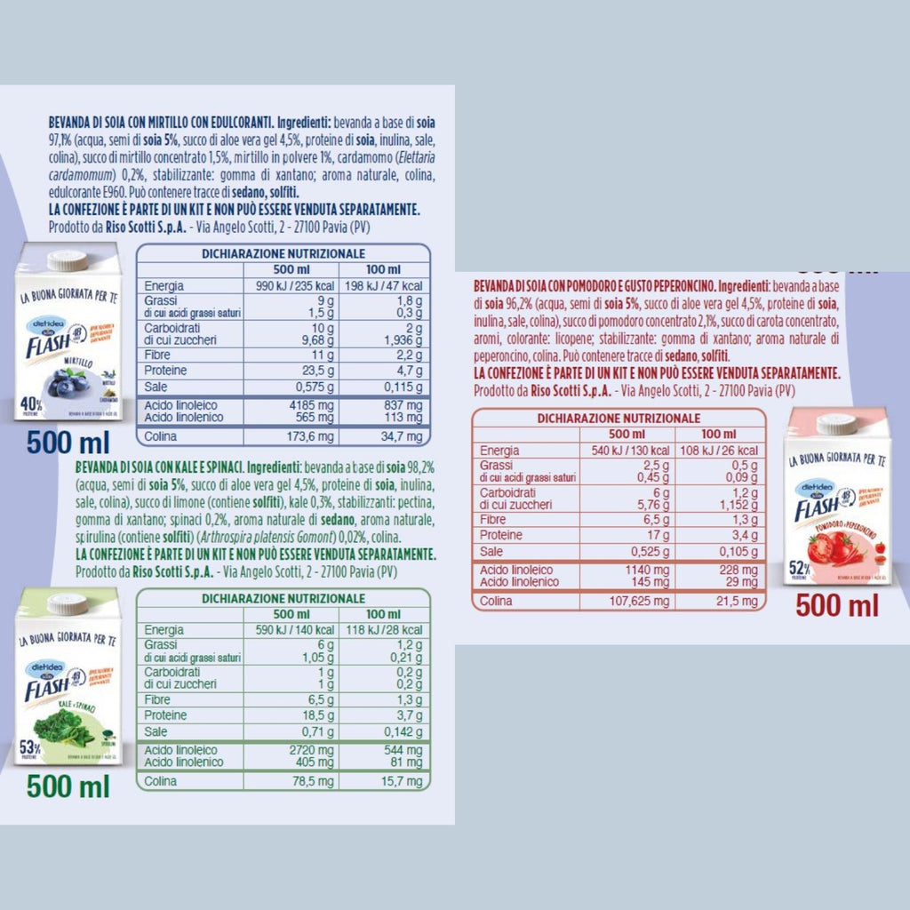 A differenza delle altre diete, che prevedono l’assunzione di brodi, succhi o estratti di frutta e verdura, Dietidea FLASH garantisce il corretto equilibrio tra i nutrienti e il fabbisogno giornaliero dei micronutrienti (13 vitamine + 13 sali minerali) per supportare il processo di purificazione e rigenerazione del corpo. Questo è stato possibile grazie alla ricerca, alla scelta di specifici ingredienti, e a una particolare tecnologia di produzione.