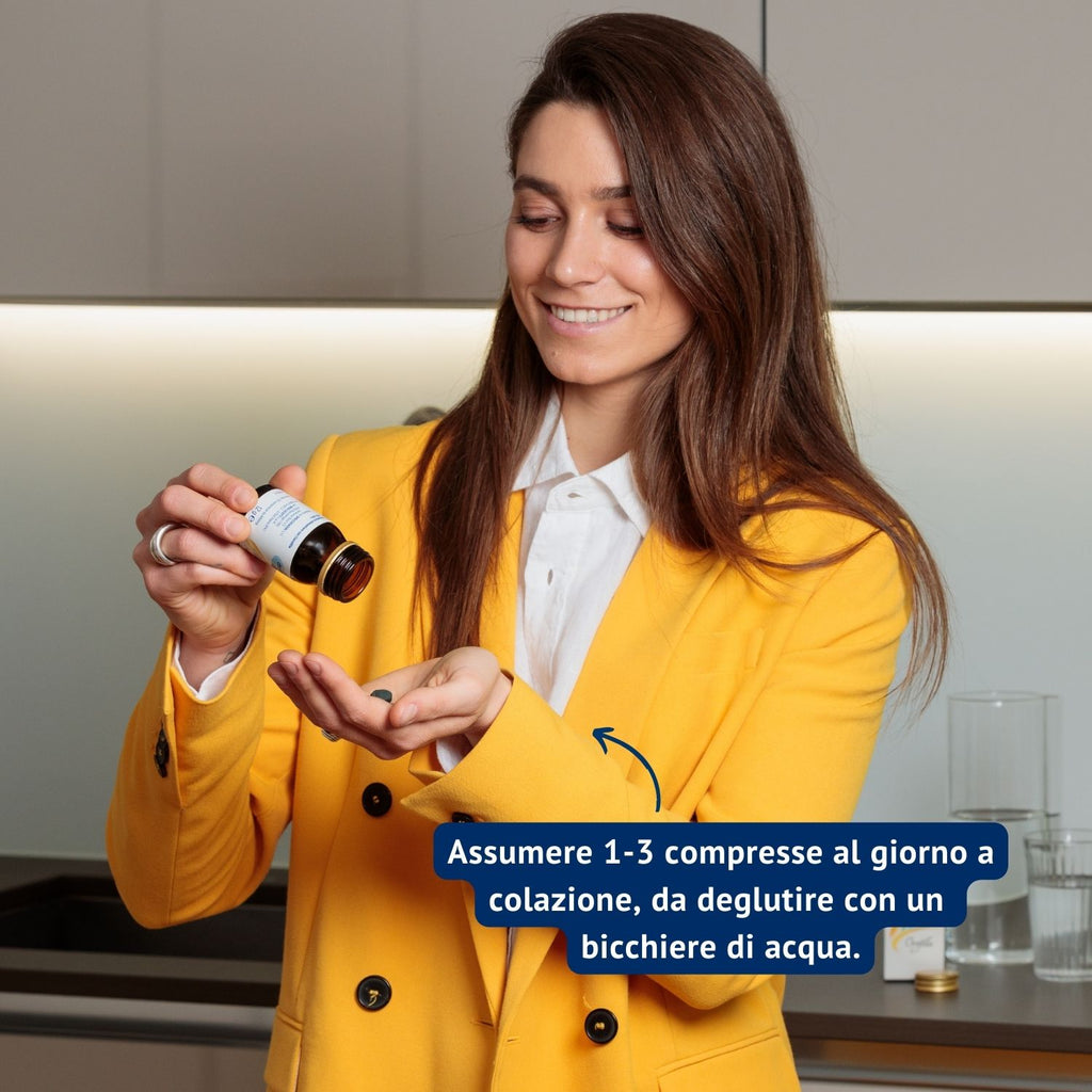 Modo d’uso: 1-3 compresse al giorno da deglutire con un bicchiere di acqua.