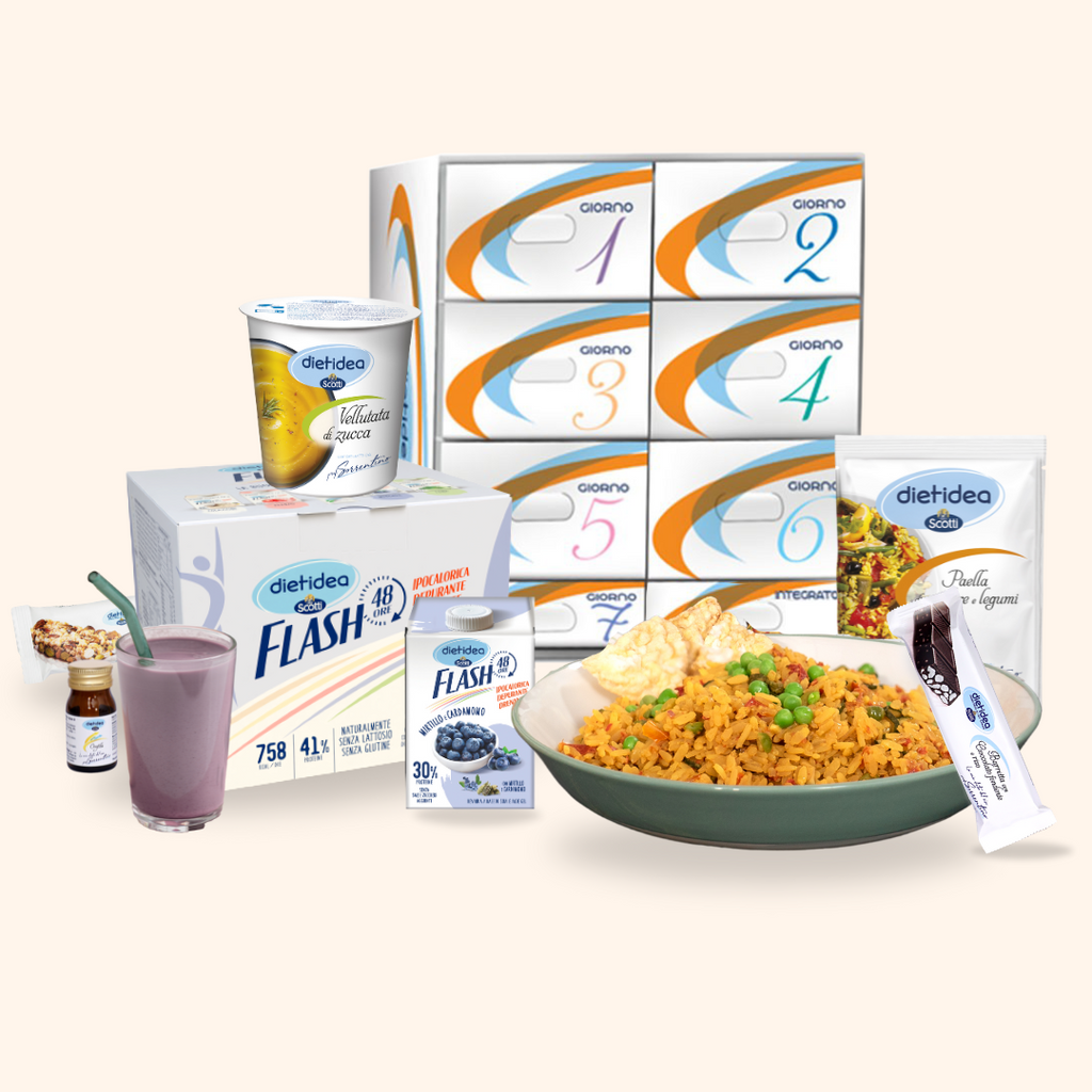 - Prova Dietidea Flash Prima del Kit 7 Giorni. Se le diete ipocaloriche ti risultano difficili: Inizia con Dietidea Flash per un'introduzione rapida e efficace. Successivamente, passa al Kit 7 Giorni per mantenere un'alimentazione controllata e sostenibile nel tempo.