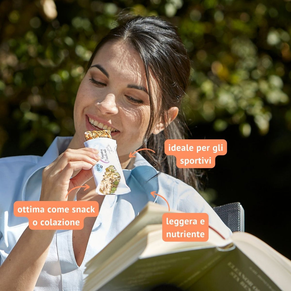 Ogni giorno: barretta al cioccolato fondente e croccante con miele e frutta secca